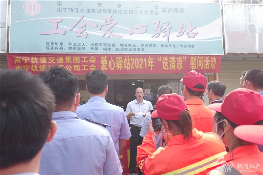 近日,持續(xù)高溫天氣給堅守一線的戶外工作者帶來嚴(yán)峻“烤”驗,為積極推進(jìn)“我為群眾辦實事”實踐活動走深走實,9月10日上午,由南寧軌道交通集團(tuán)工會、南寧軌道地產(chǎn)集團(tuán)工會牽頭,攜同南寧軌道城市發(fā)展公司工會、軌道地產(chǎn)物業(yè)公司工會及那洪街道黨工委、沛賢社區(qū)在金凱路沛友巷工會愛心驛站組織開展“送清涼”慰問活動,南寧市總工會技協(xié)辦副主任阮杰,經(jīng)開區(qū)工會工委副主任易蘭新,交警十大隊教導(dǎo)員駱明等同志出席活動。