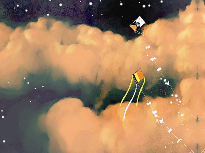 小囡囡就這么仰望著那個(gè)高掛在天上的風(fēng)箏,她也不去追,不去搶。因?yàn)榭粗L(fēng)箏還在天上,心里就還有夢。如果把它拿在手上,可能,她就再也不會做夢了?! ?