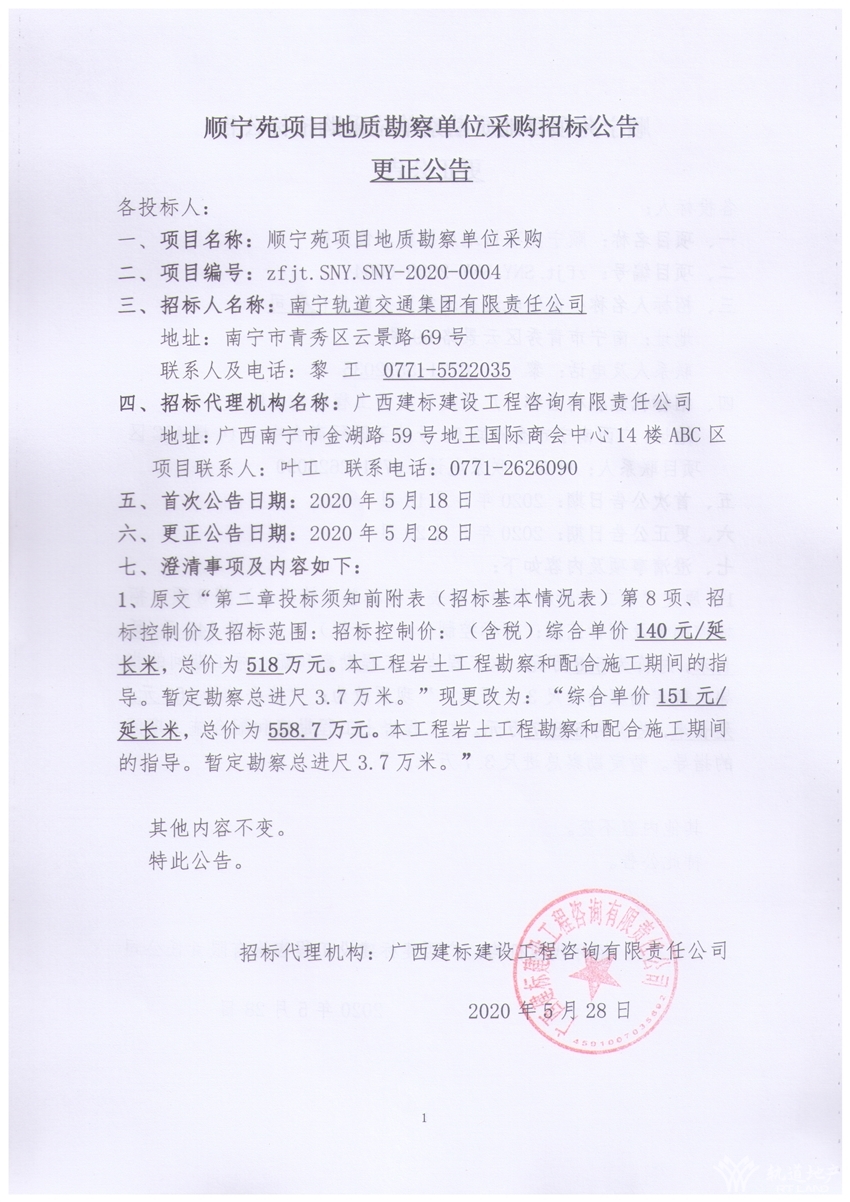順寧苑項(xiàng)目地質(zhì)勘察單位采購招標(biāo)公告更正公告